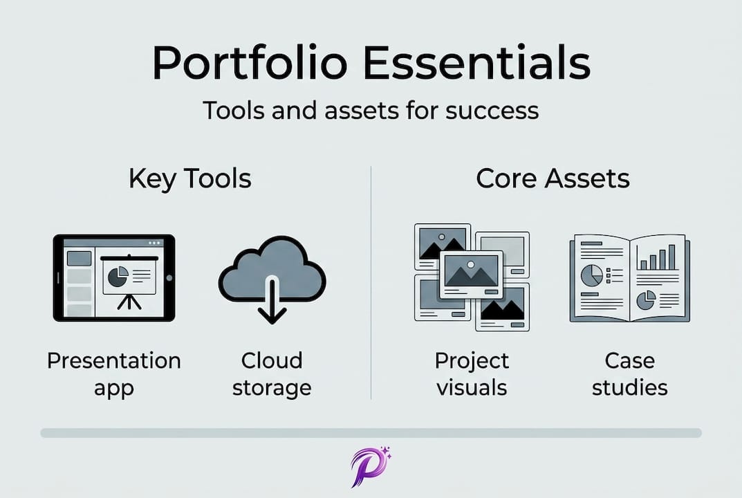 Before you dive into structuring or storytelling, ensure you have all the essentials ready. Jumping straight into design without the right materials is one of the most common mistakes people make, and it leads to portfolios that feel rushed or incomplete.