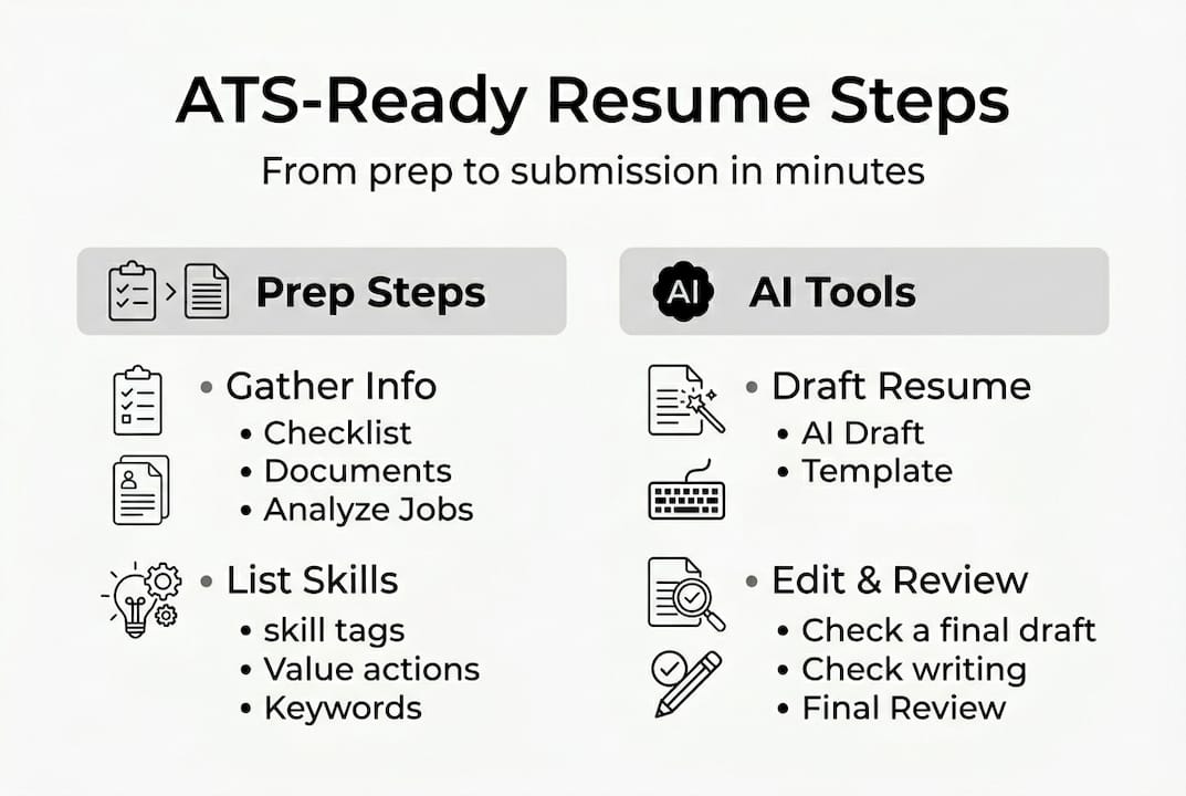You spend two hours tailoring a resume, hit submit, and hear nothing. No callback, no email, not even a rejection. The culprit is usually an ATS (Applicant Tracking System), the automated software that screens resumes before any human sees them. Studies suggest that over 75% of resumes are rejected by ATS before reaching a recruiter. The good news: AI-powered resume tools have changed the game entirely. This guide walks you through every stage of the resume content creation process, from gathering your materials to final submission checks, so you can move faster and land more interviews.