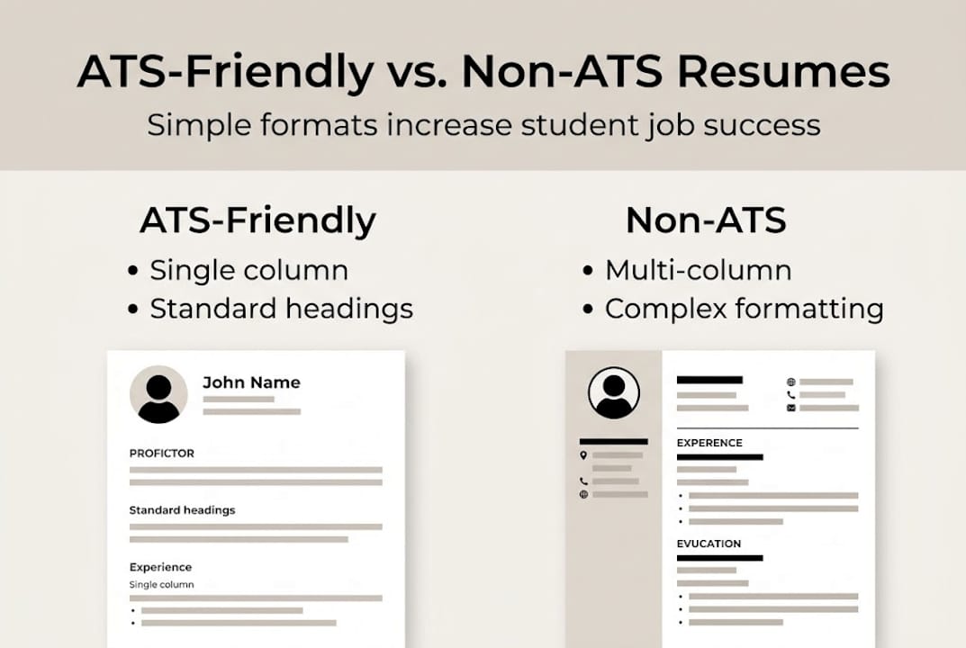 ATS-friendly templates use single-column layouts, standard headings, and simple formatting. Avoid any template that includes images, graphics, or multi-column designs, as these commonly cause parsing failures.